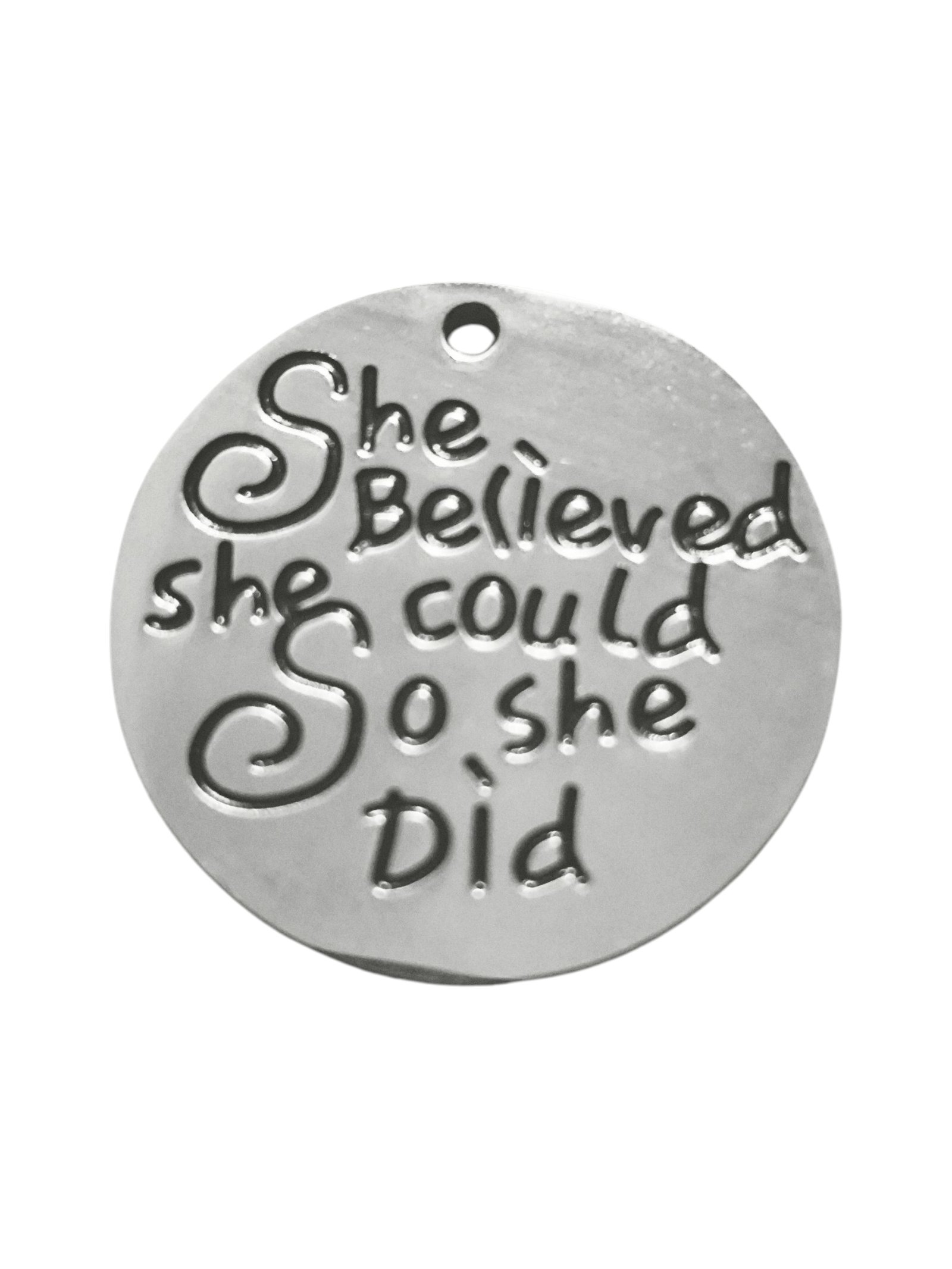 Believe Pendant in stainless steel, 25mm round