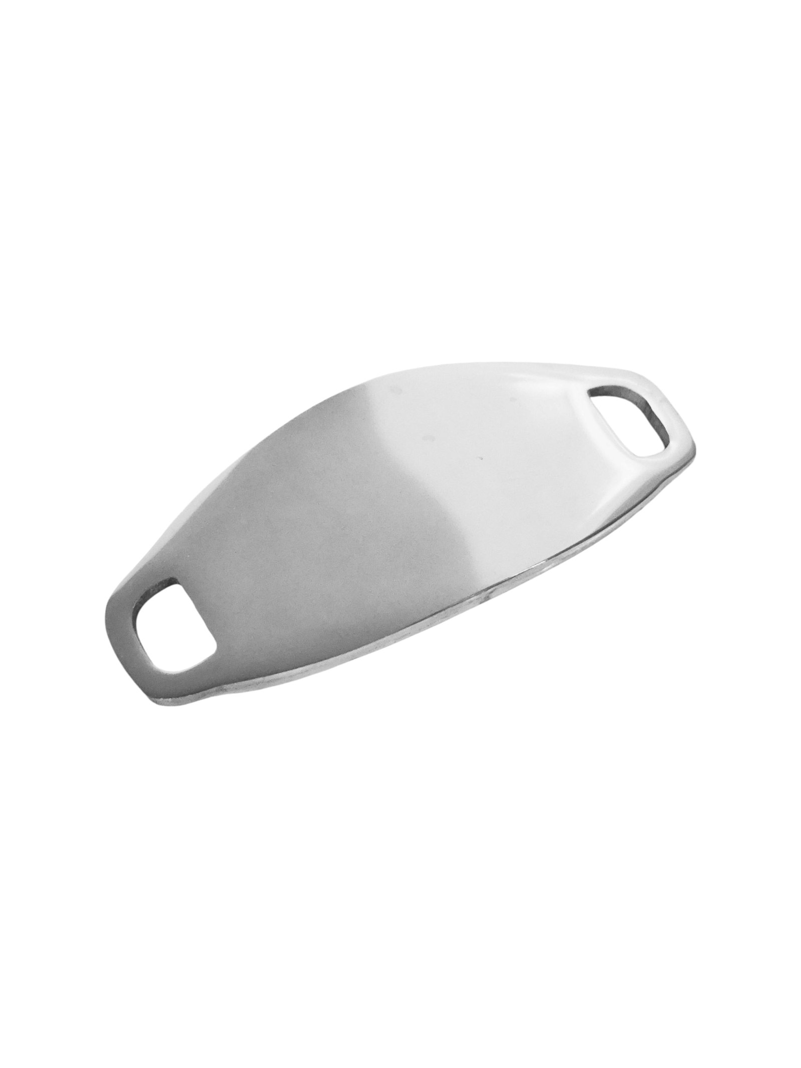 Flat stainless steel connectors are thin, flat-shaped metal elements used to link other components like charms, chains, or beads. They act as the central or linking element in a piece of jewelry.