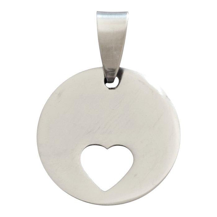 Circle tag with heart punch-out pendant in stainless steel. 20mm