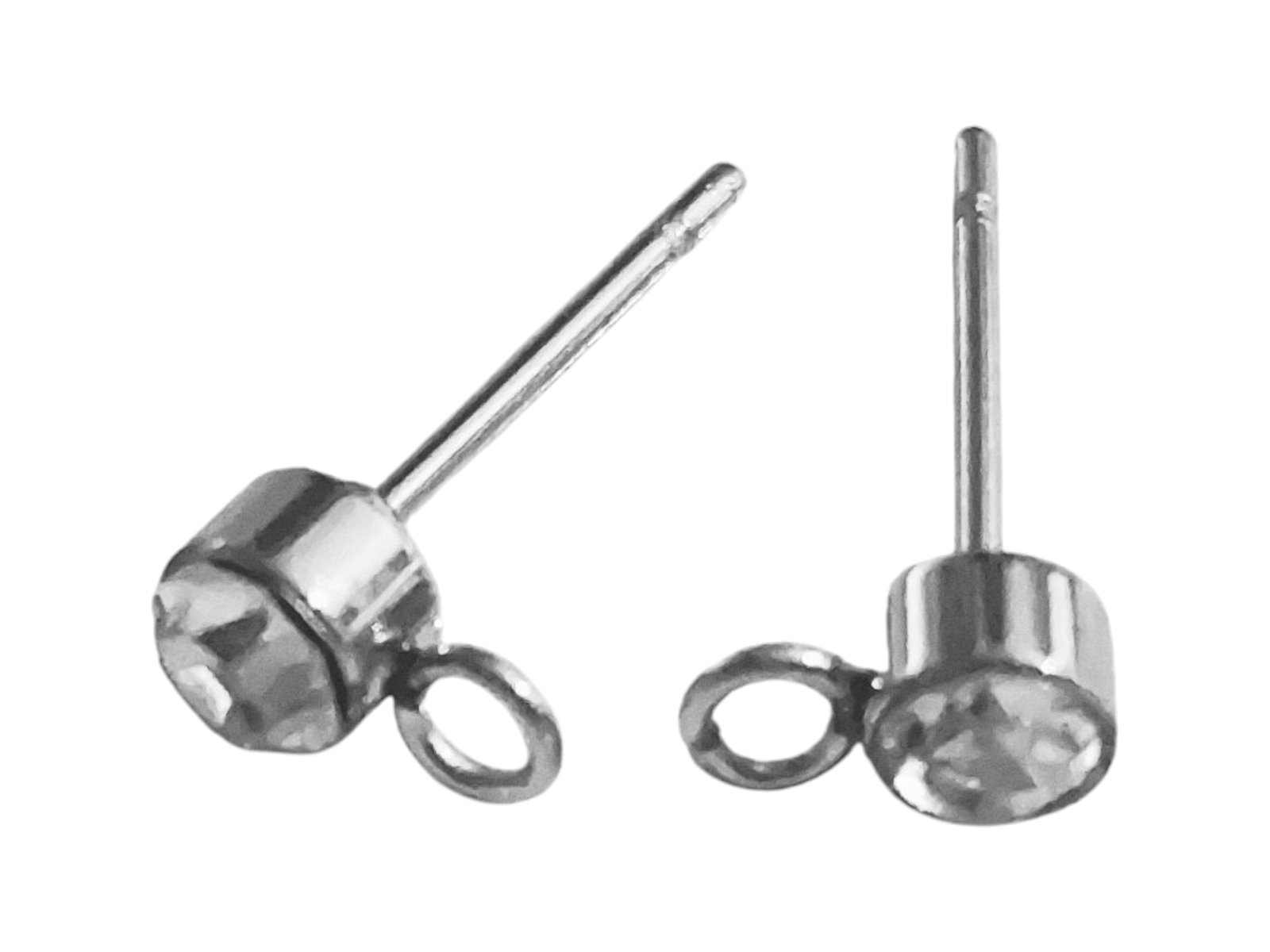 Earring stud pair with CZ & loop, stainless steel, 4.2mm