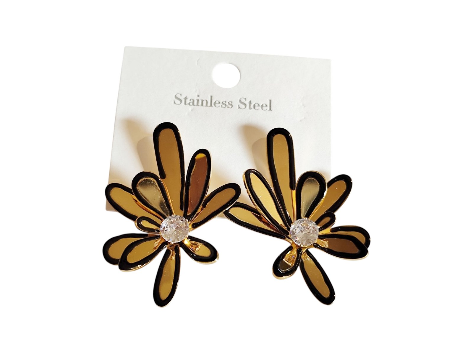 Gold and Black Stainless Steel Flower Earring, 44mm