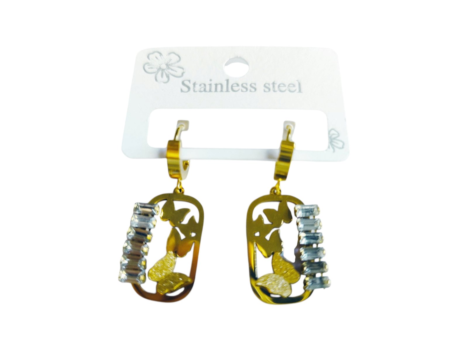 These multi‑component earrings are made from strong stainless steel and coated with a special gold or silver colour. The golden look is created by a process called ion plating (IP) or PVD (Physical Vapor Deposition). This method bonds a thin layer of gold‑coloured material onto the stainless steel surface, making it very hard‑wearing and shiny. The result is jewellery that looks like real gold, but keeps the strength, rust resistance, and affordability of stainless steel. Perfect for everyday wear and gentle on sensitive skin!