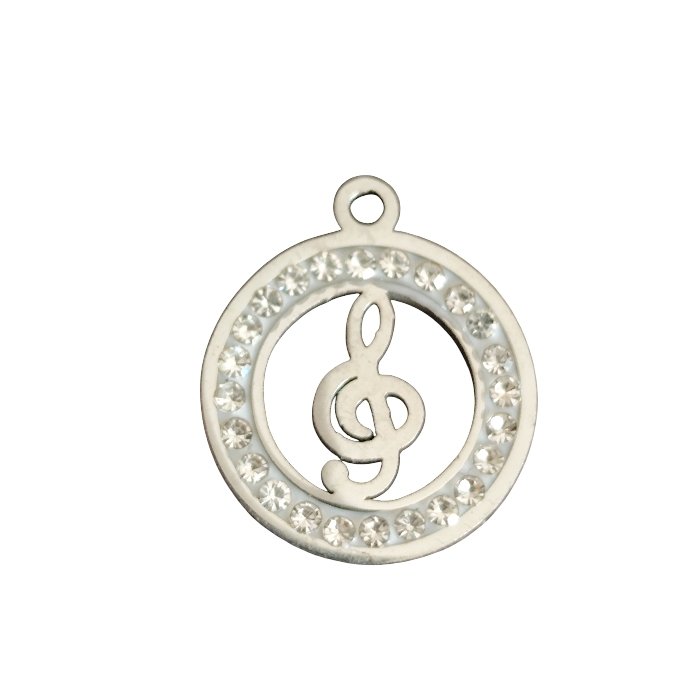 This item is a stainless steel music-themed charm featuring a treble clef cut-out design.
