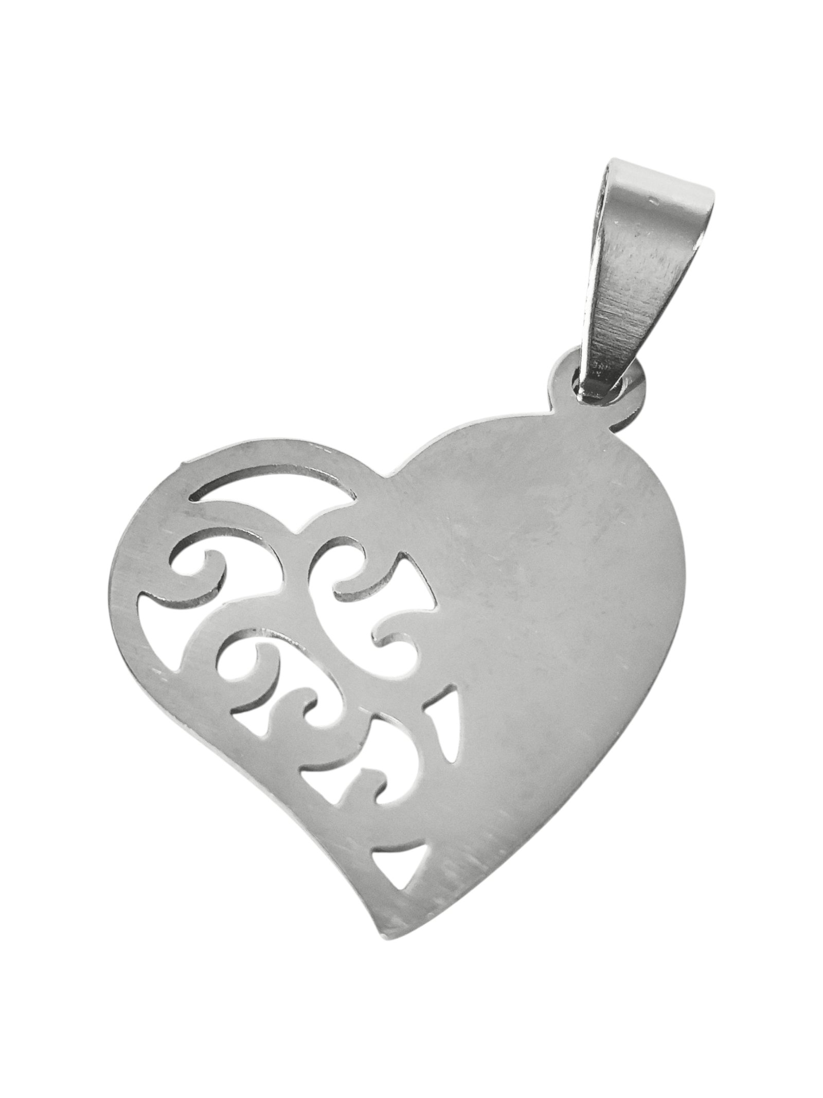 Pendant in stainless steel with bail, Vine cut-out in Heart, 22mm