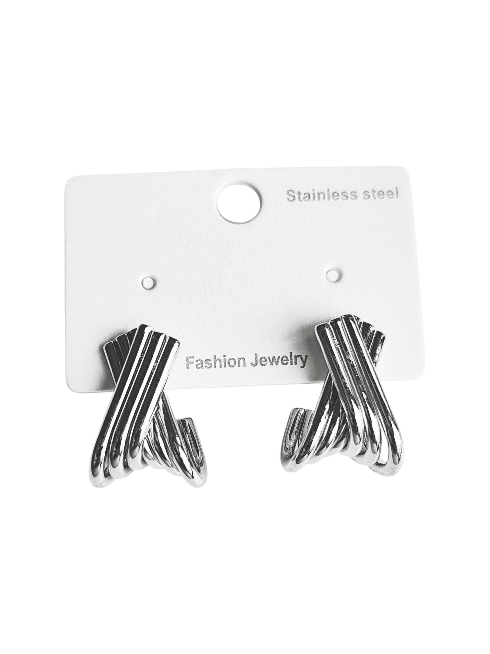 Silver stainless steel earrings are shiny and pretty.