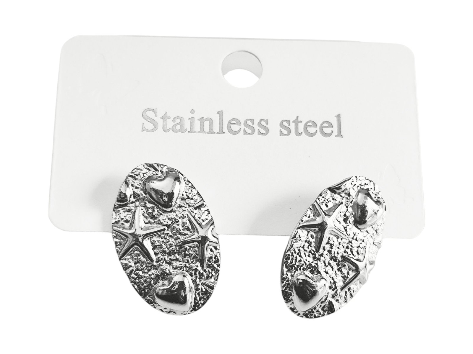 Stainless Steel Heart and Star Studd Earring, 21x13mm