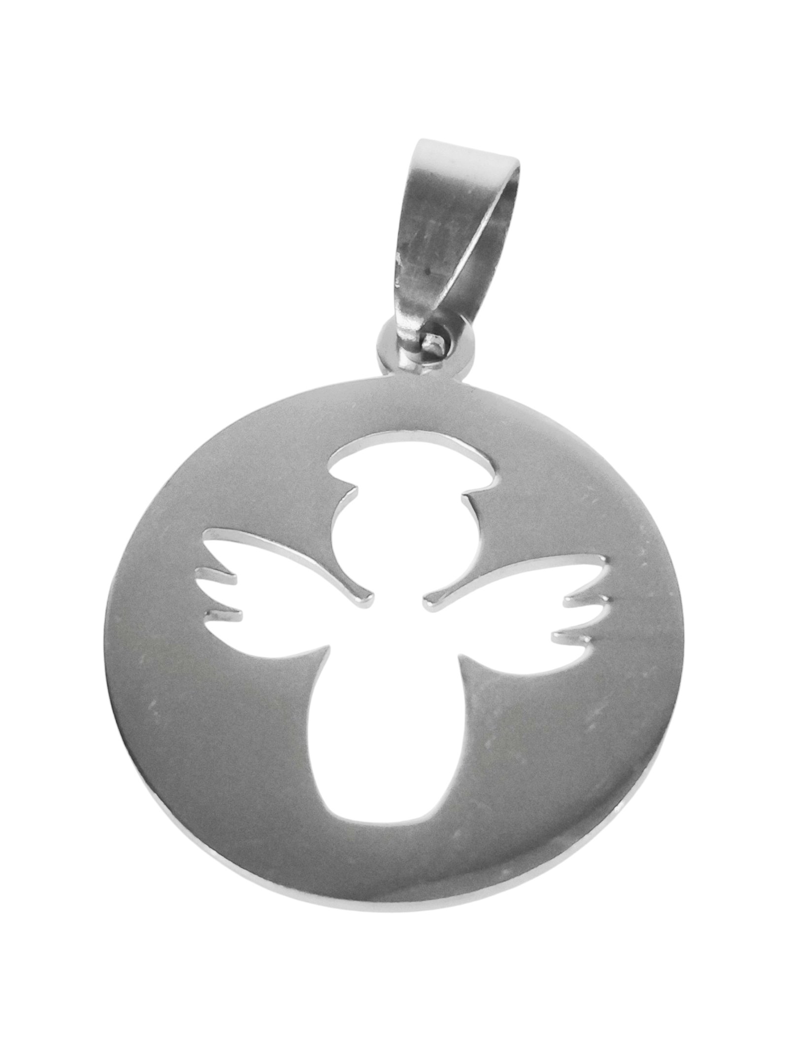 Stainless Steel Pendant, Angel in coin, 24mm round
