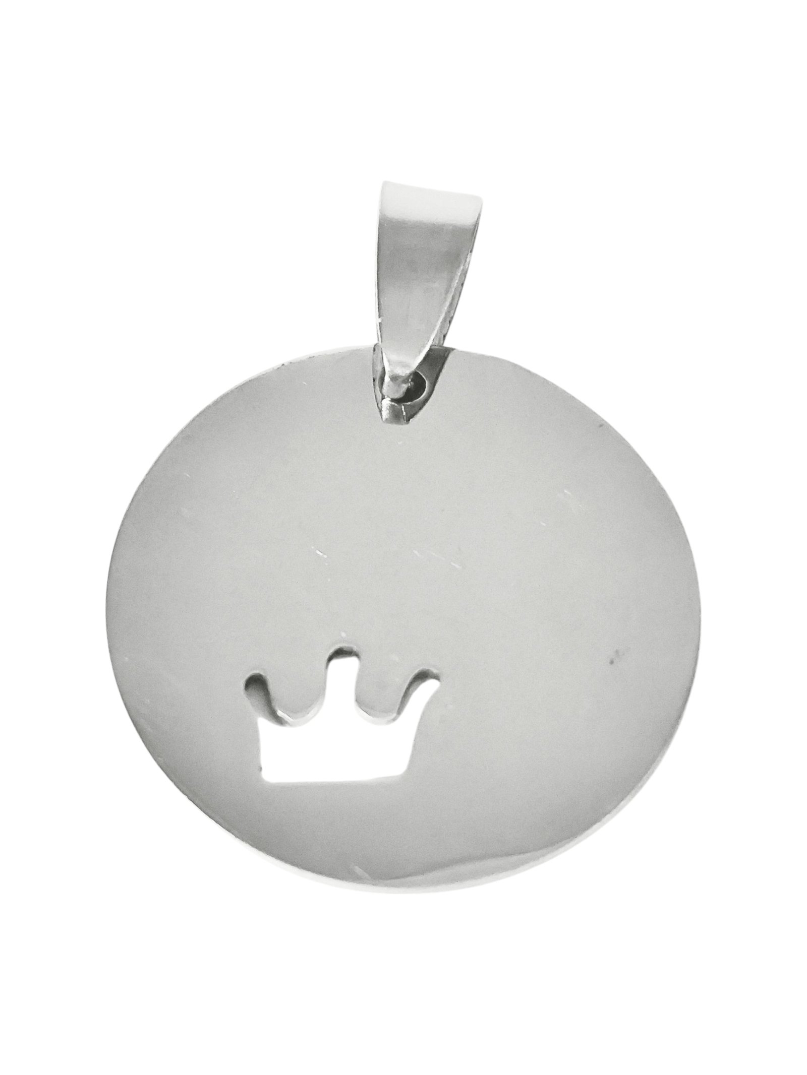 Tag Pendant in stainless steel with bail, Crown, 25mm